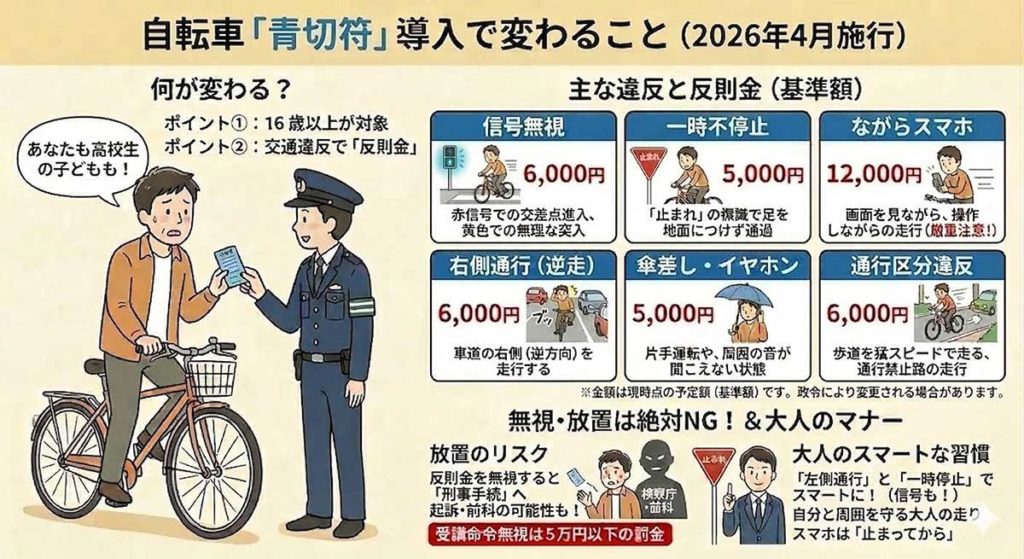 【2026年4月施行】自転車も「青切符」の対象に!知っておくべき変更点と反則金を徹底解説